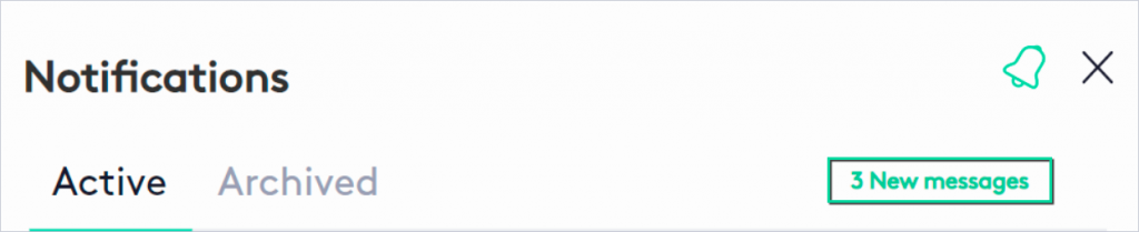 The Notification center is always available, whether or not you have new messages, from the Notifications button located on the right side of the top bar. Every time a new notification is received, the button will alert you displaying a green badge ().