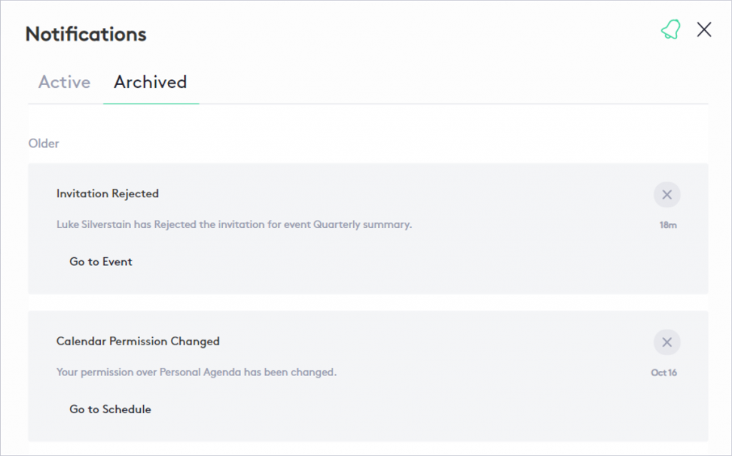Once you click on the Notifications button, the Notification center panel will open, showing you all the items in descending order according to their issue dates, regardless of which tab you select.