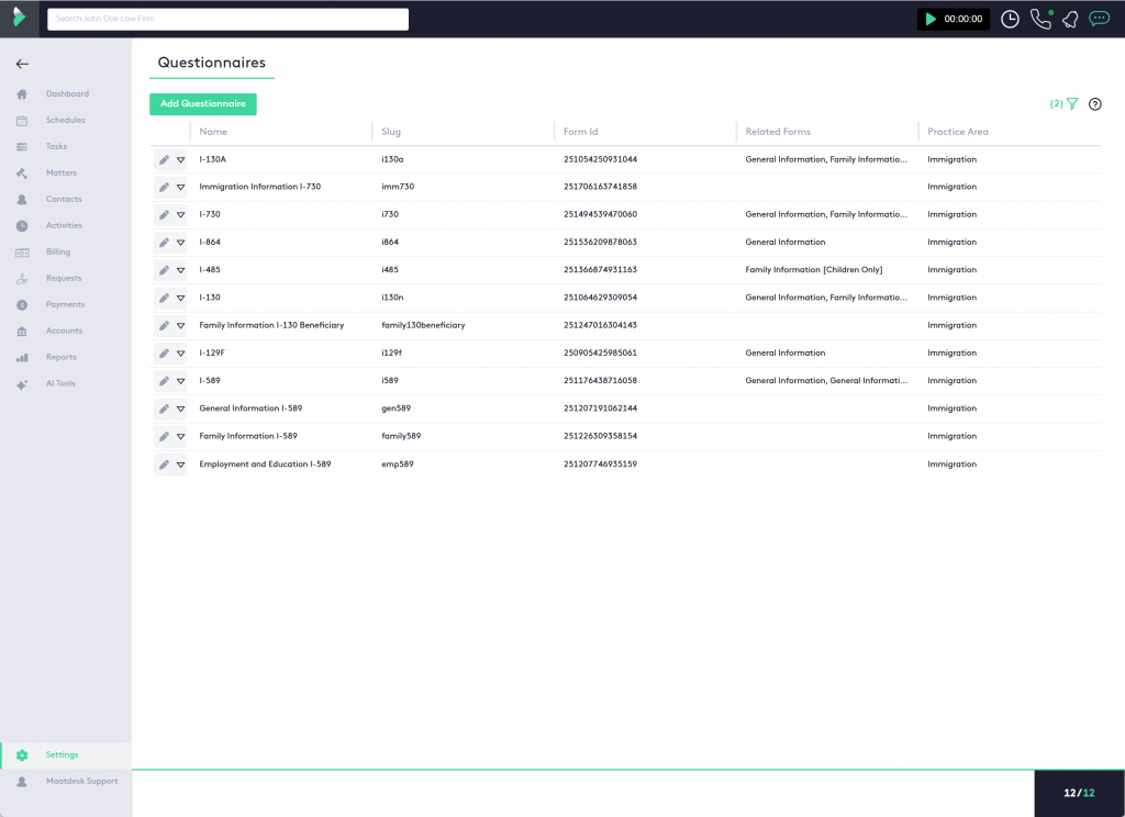 The Questionnaires module offers a streamlined solution for creating, managing, and distributing digital forms to clients and contacts. By integrating with external forms from Jotform, this module enables your firm to efficiently collect necessary information and import it directly into the platform.